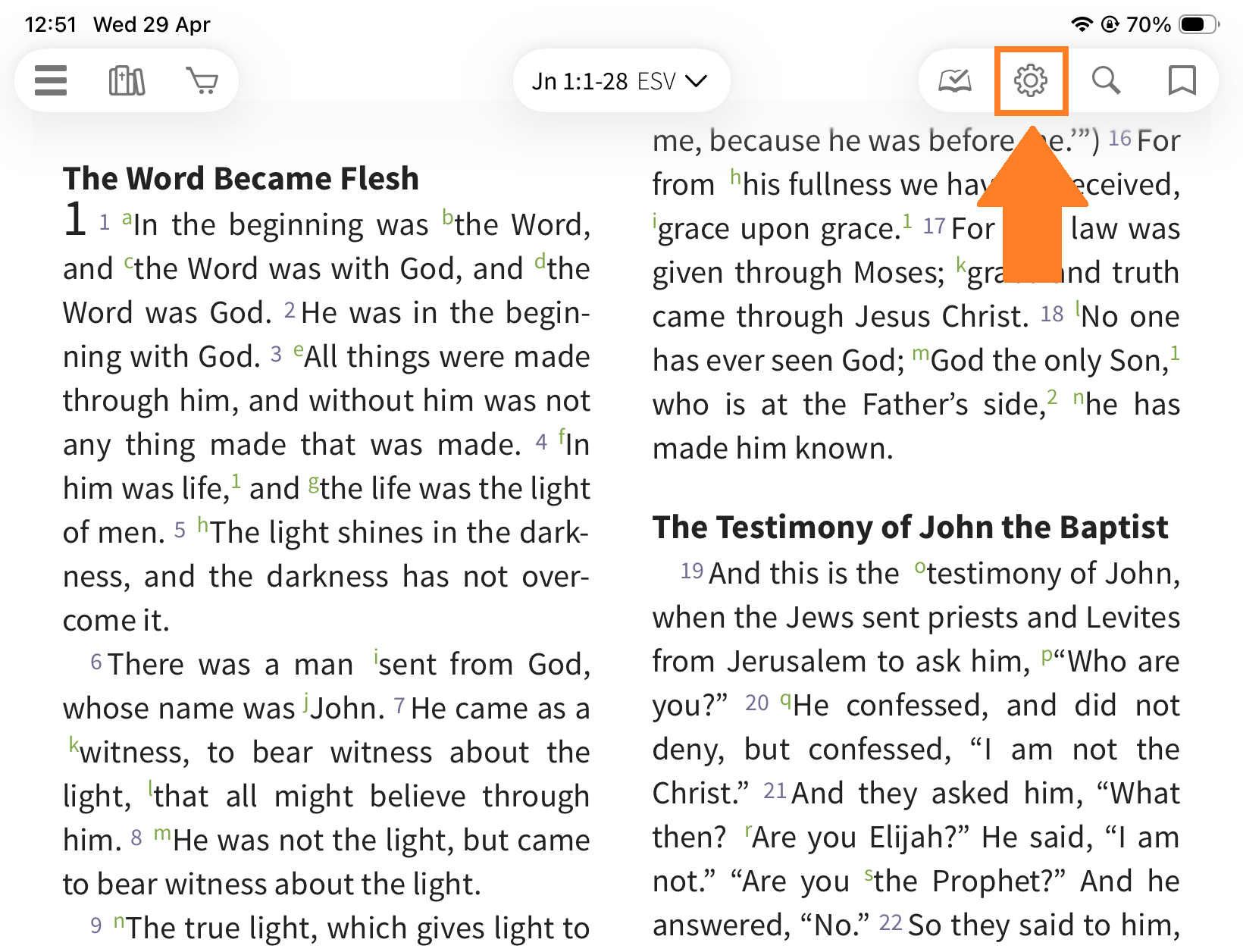 After selecting a Bible, you can see the cross references. Tap a reference to preview it in a pop-up window.