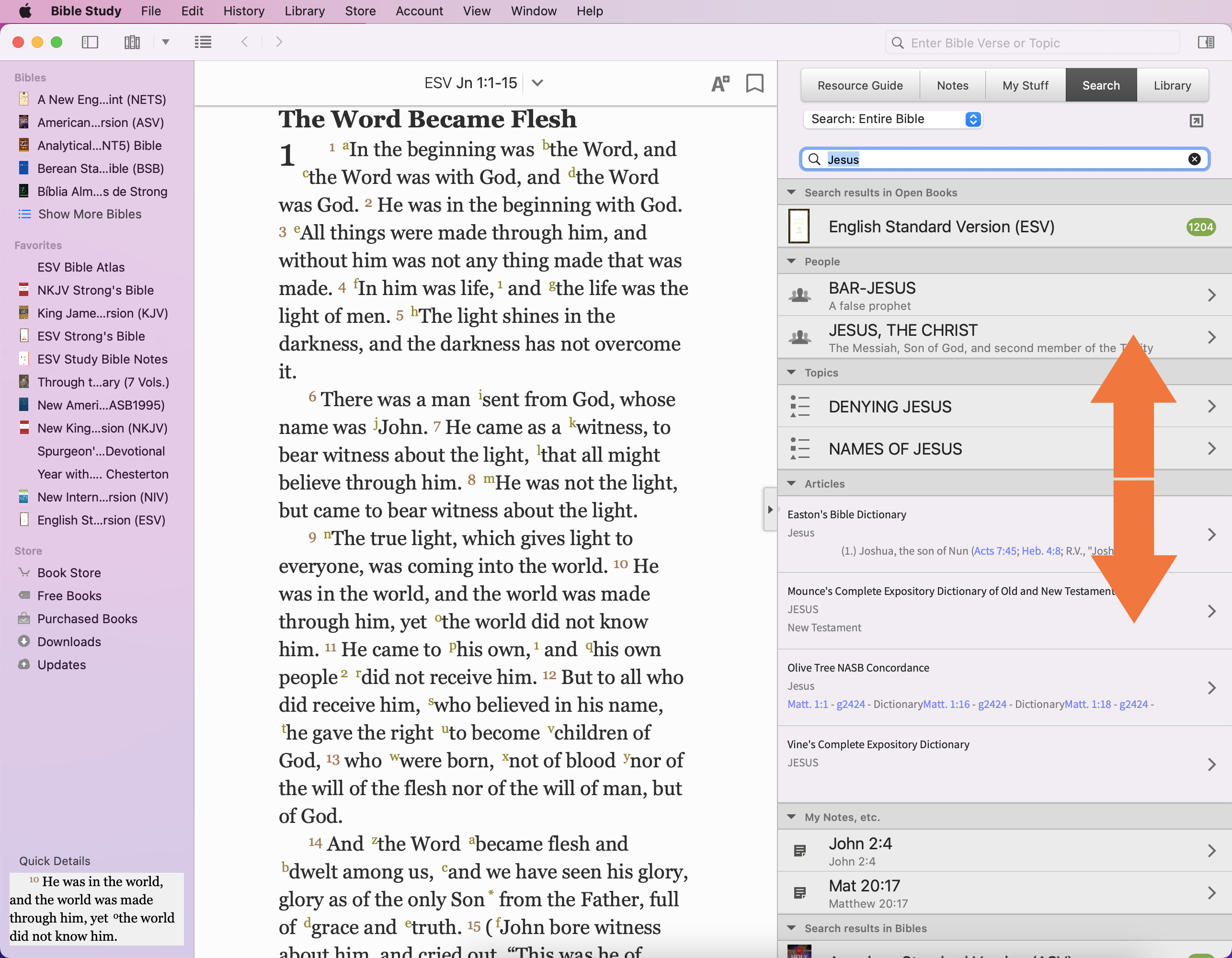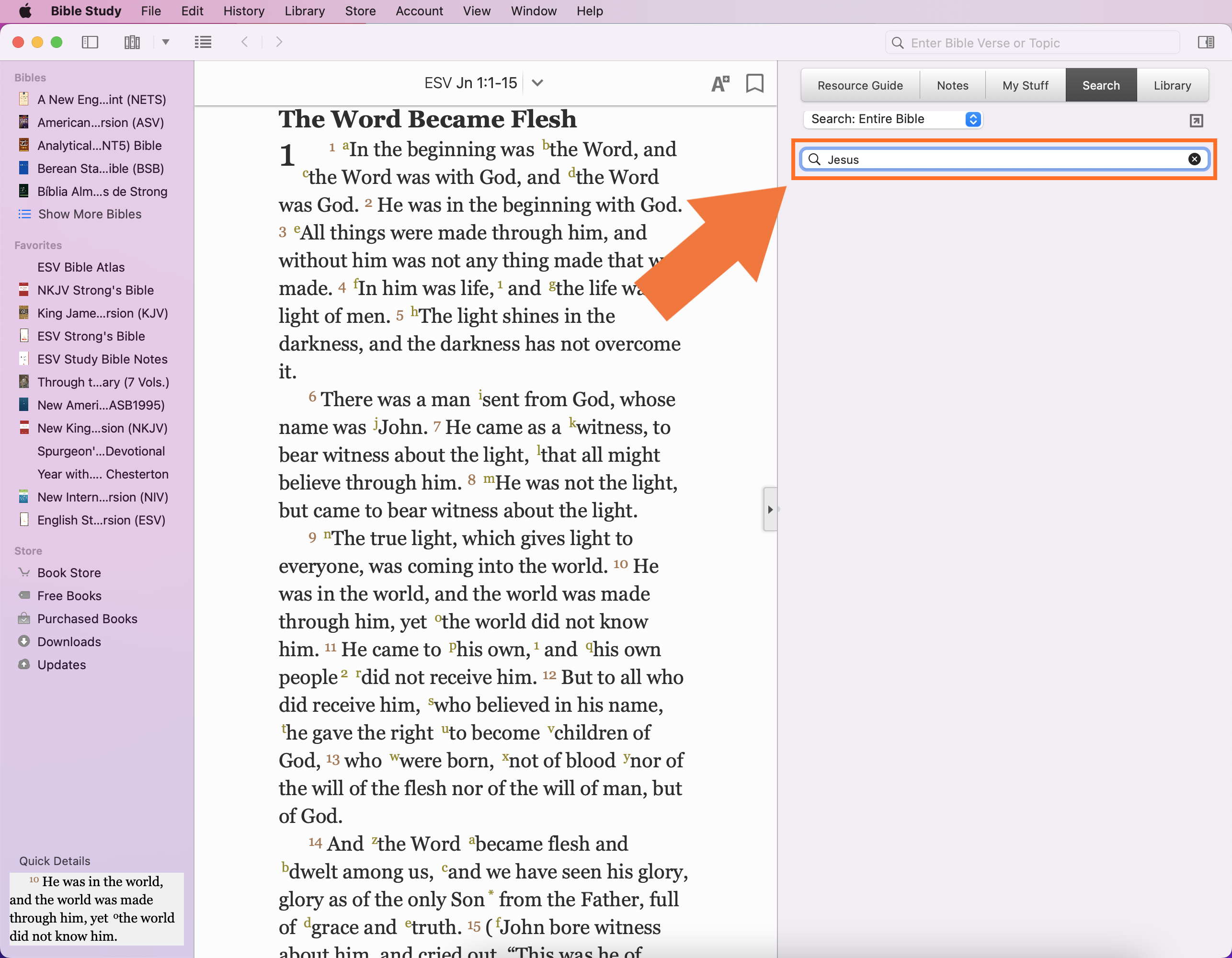 Using the search option here allows you to locate a topic quickly. In my example, I performed a search for Jesus.